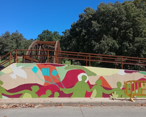 Estos días se está terminando el Mural para la salud mental en la pared del puente de madera del paseo Lluís Companys de Llinars, que están realizando los usuarios del Club Social Torrassa de la Fundación Privada LAR. El 10 de octubre se celebra el Día Mundial de la Salud Mental y por ese motivo el Club Social Torrassa ha querido ampliar sus acciones de sensibilización proponiendo una nueva actividad que quede plasmada en una de las paredes del municipio.